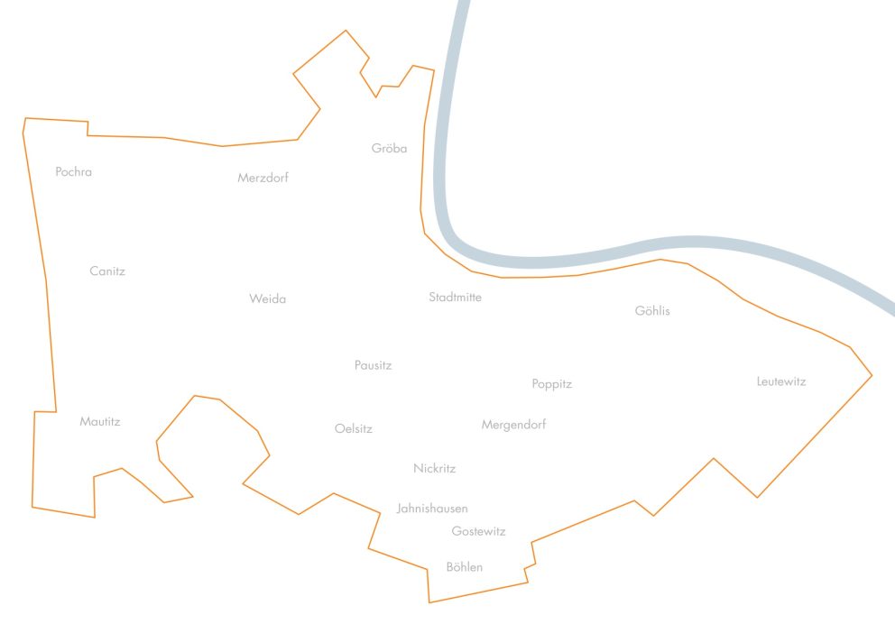 Wir bieten eine sichere und zuverlässige Stromversorgung in den orange umrahmten Stadtgebieten.