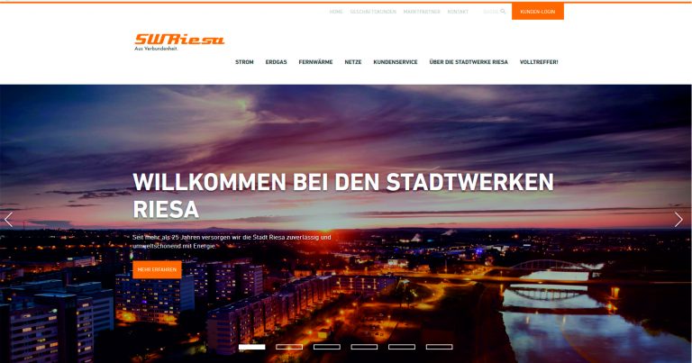 Die letzte Überarbeitung des Internetauftrittes der Stadtwerke Riesa liegt mehrere Jahre zurück – so war es an der Zeit, sich online zu modernisieren und einen zeitgemäßen Internetauftritt zu schaffen. Neben der optischen Neugestaltung lag den Stadtwerken Riesa die Überarbeitung der Inhalte und Funktionen hinsichtlich Bedienungs-freundlichkeit am Herzen. Klare Strukturen ermöglichen es dem Kunden nun, sich über das gesuchte Produkt oder die „VOLLTREFFER!“-Aktionen schnell und einfach zu informieren. Auch das Serviceportal „VOLLbequem!“ erhielt in diesem Zuge einen neuen Anstrich.