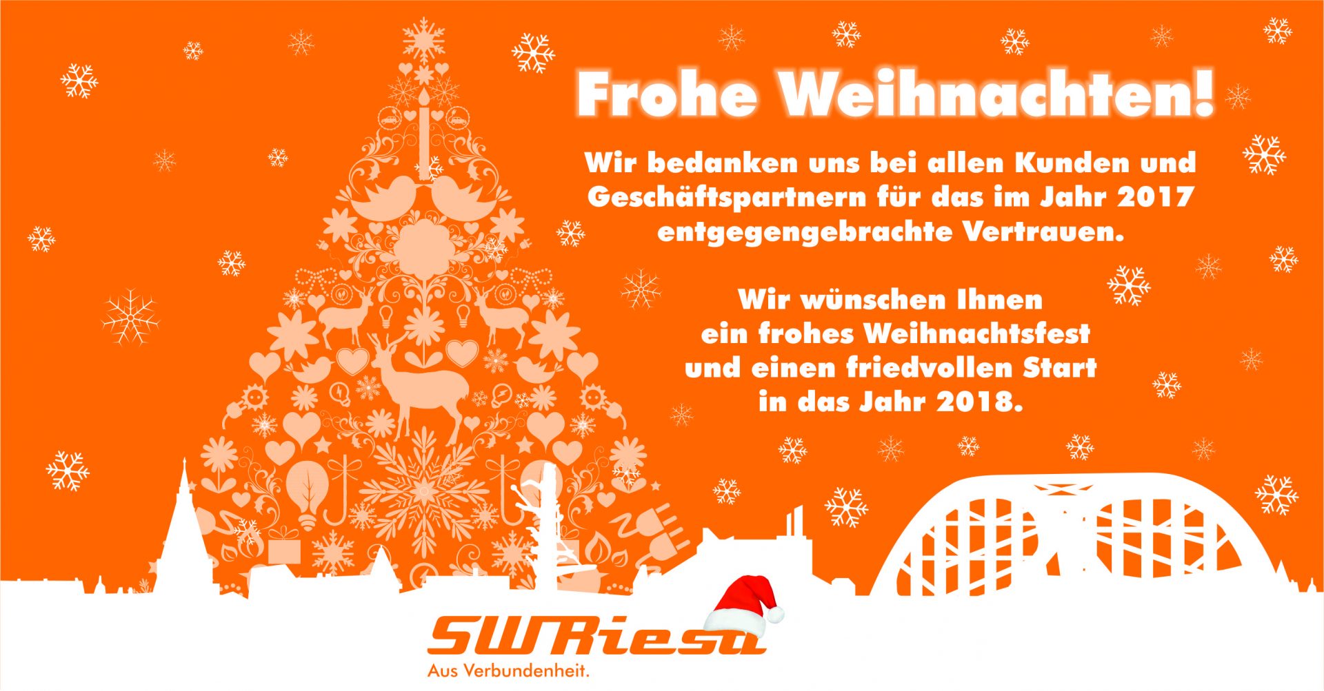 WIR BEDANKEN UNS BEI ALLEN KUNDEN UND GESCHÄFTSPARTNERN FÜR DAS IM JAHR 2017 ENTGEGENGEBRACHTE VERTRAUTEN. WIR WÜNSCHEN IHNEN EIN FROHES WEIHNACHTSFEST UND EINEN FRIEDVOLLEN START IN DAS JAHR 2018.