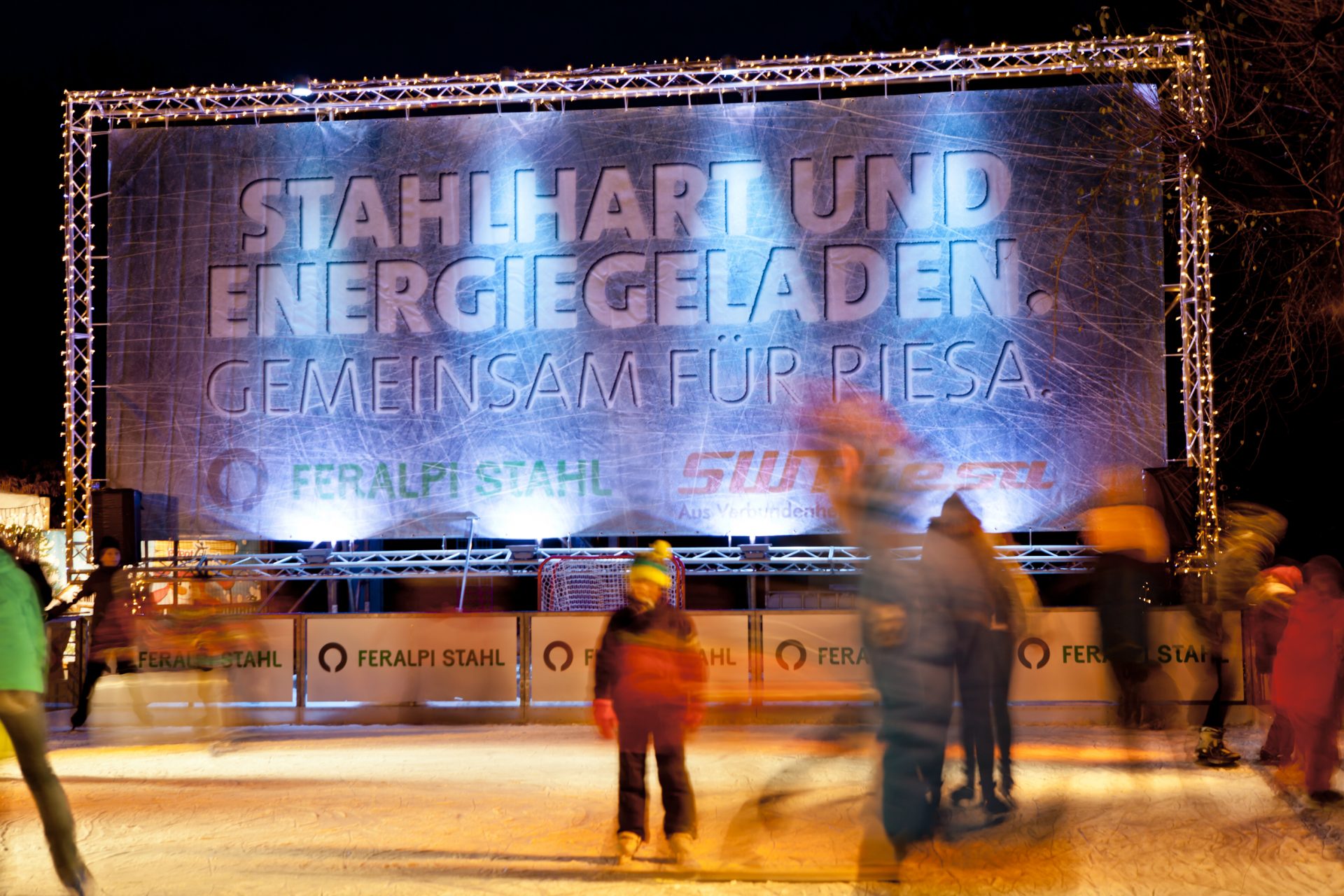 Die Eislauffans können sich freuen – denn gemeinsam ermöglichen FERALPI STAHL und die Stadtwerke Riesa, dass auf der Eisfläche vor der Freitreppe am Rathausplatz bereits eine Woche eher fleißig Schlittschuh gelaufen werden kann.