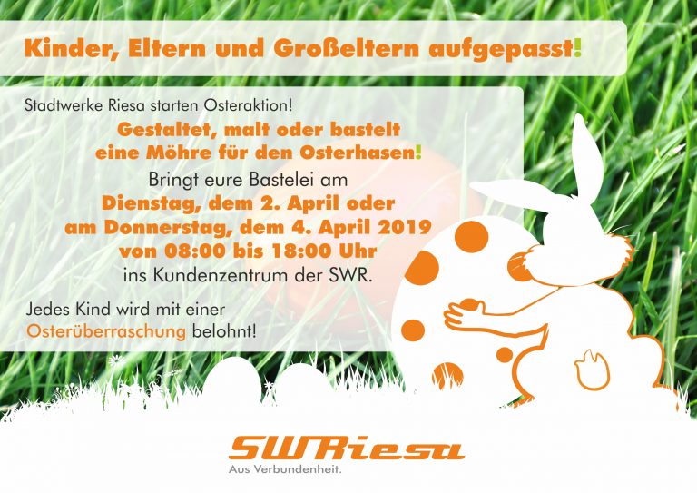 Dieses Jahr freut sich der Stadtwerke-Osterhase über eine selbstgebastelte, -gemalte oder -gestaltete Möhre.