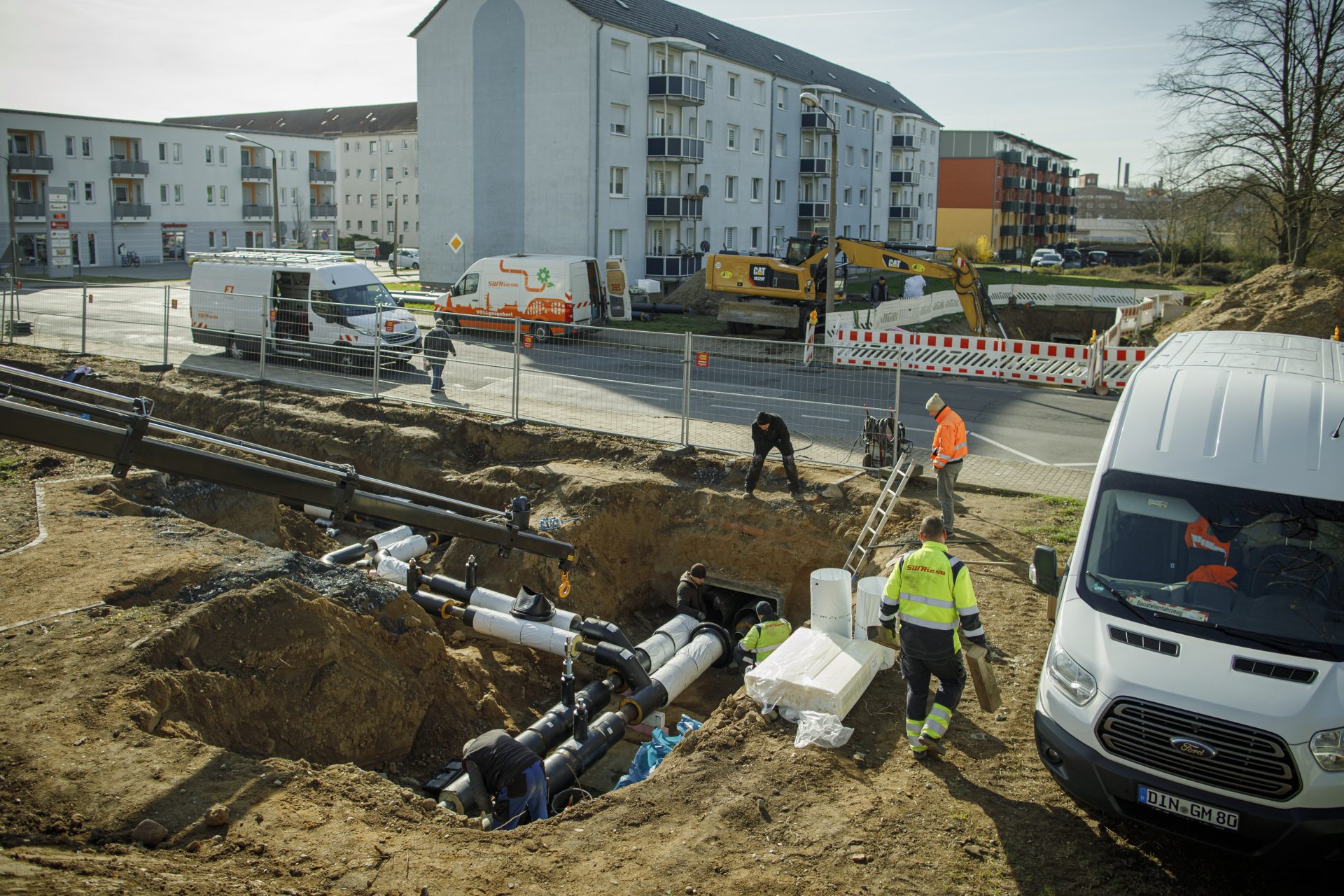 Die Fernwärme-Hauptleitung auf einem Abschnitt von ca. 40m an der Straßenquerung der Alleestraße (Kreuzung Straße Heiz-Steyer-Straße) wurde Ende März 2024 final fertig gestellt und in Betrieb genommen. Die Baumaßnahme war nötig, da die alte Leitung, die seit dem Bau des Wohngebietes besteht, Mitte Dezember 2023 einen Schaden aufwies, welcher durch einen Wasserverlust im Netz festgestellt wurde. Nachdem der Schaden durch die Mitarbeiter der SWR lokalisiert wurde, erfolgte aufgrund der Witterung im Dezember lediglich eine Notreparatur, um eine Abschaltung der Fernwärmeversorgung zu vermeiden.