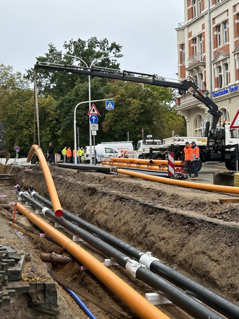 Die Arbeiten an der Breiten Straße kommen gut voran. Der Bau der Erdgasleitung ist abgeschlossen – lediglich die verzweigte Einbindung im Kreuzungsbereich Hauptstraße/Alexander-Puschkin-Platz steht noch aus. Auch beim Stromnetz geht es weiter: Der erste von mehreren Kabelzügen steht kurz bevor, weitere folgen in den nächsten Wochen. Teilweise sind dafür noch Tiefbauarbeiten notwendig. Die Fernwärmeleitungen in […]
